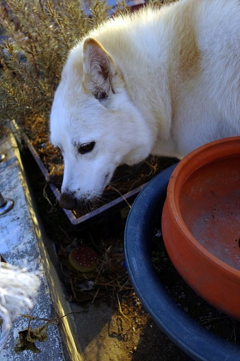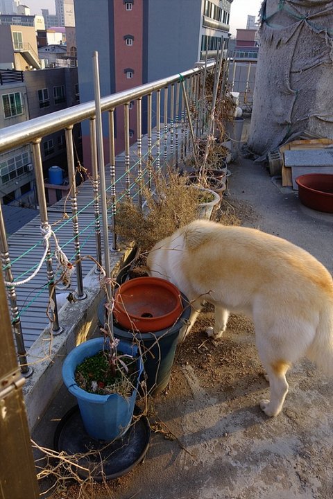 화분 흙속에 간식 저장하다가 들켜버린 심바.ㅋㅋㅋ