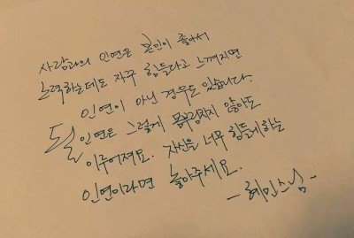 그런데 그 글 귀가 눈에 들어 온다는 것은 벌써 이미 이별하셨네요. 상대가 좋은 모습 안 보여주더라도 너무 미워하지 마세요.