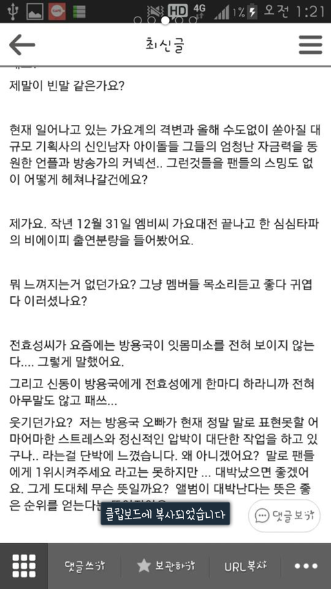 진짜공감이다..개공감이다소름끼치게 막 스밍스밍돌리자돌리자하는사람많은데 그런말하면서안하는사람도많고 스밍중요성을알아줫음좋겟어 꼭1위한번찍자