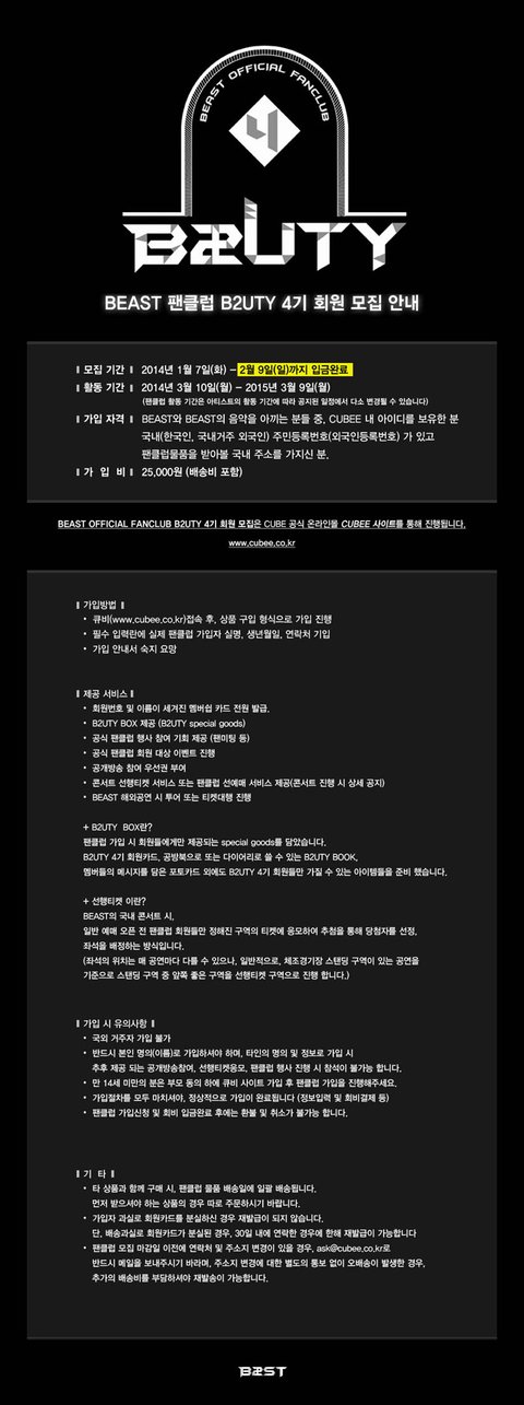BEAST OFFICIAL FANCLUB B2UTY 4기 가입을 원하시는 분들께서는