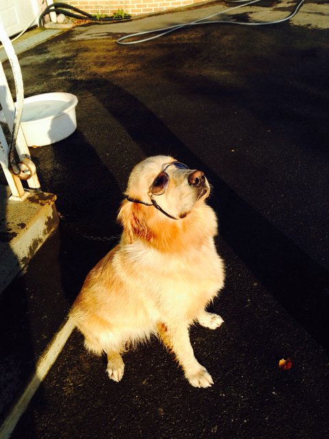 목욕하고 썬글라스 씌여봤어요 목욕할땐 목줄해놔야 샴푸칠하다 중간에 잔디밭가서 안뒹굴어요 목줄 안하고 목욕 시키면...가끔 논뚜렁 들가서 진흙 뒤집어 쓰고 오거든요 그럼 전 멘붕옴 ㅠㅠ 허리 뿌러져라 목욕시켰능데 해맑은 얼굴로 절 쳐다보며 씻겨 달라고 진흙 투성이 하고 앉아있음...