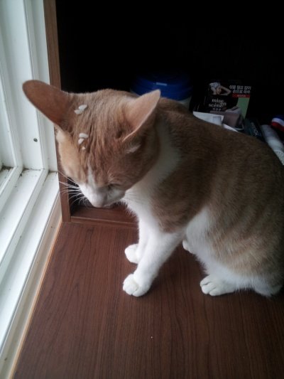 (둥이 이마엔 사실 저의 밥알들이 묻은거 ...밥먹으면서  둥이가 넘 안쓰럽게 있길래 간다고 갔는데