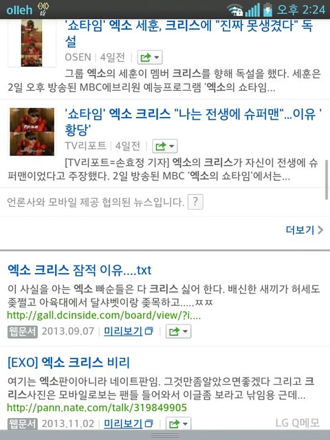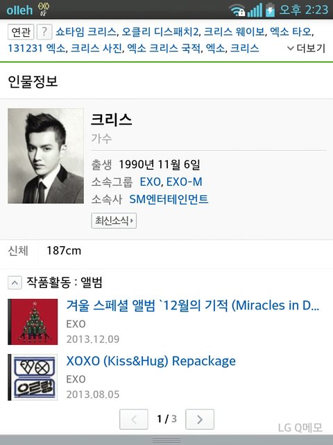 그래서 저도 크리스라고 치면 다른 동명이인. 크리스마스 등등의 원치 않는 검색어결과가 나와서 엑소 크리스라고 쳤습니다 (모바일에서)