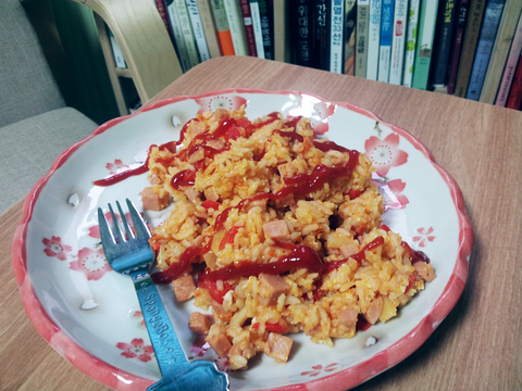 스팸이랑 계란. 케챱만 있음 되는 초간단 볶음밥임.
