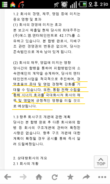 자 합병문서중 이런글이 있었어요.