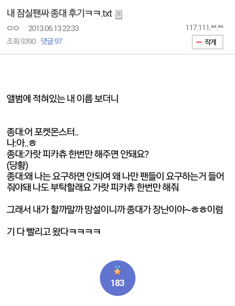 늑미때 잠실팬싸후기봤어?ㅋㅋㅋ