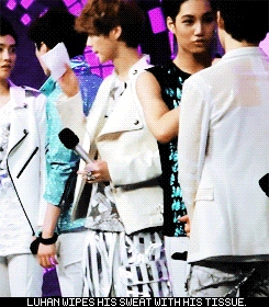 땀닦은 휴지를 아무렇지않게도 루한이형 호주머니로 쏘~옥