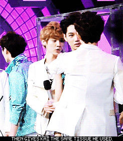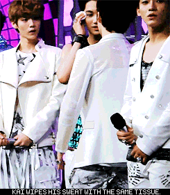 루한이형에한테 받은 휴지로 땀닦는 종인이