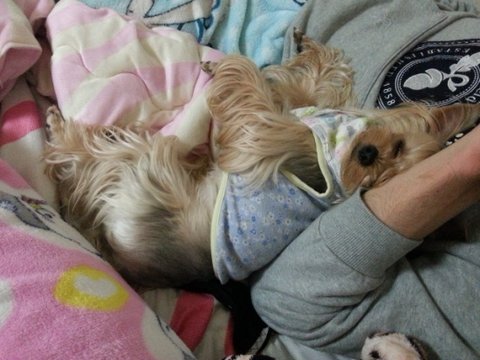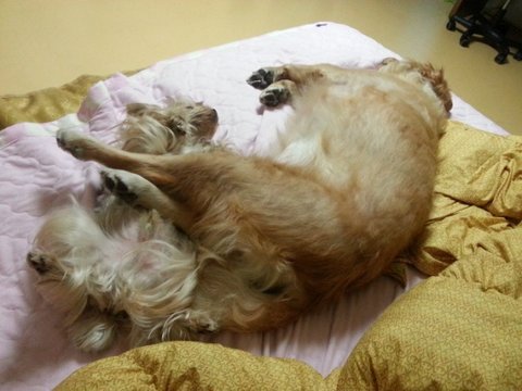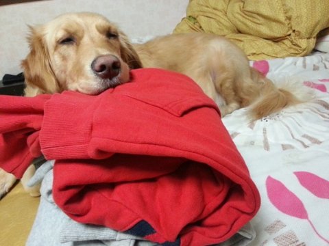 빨래위에 얼굴 저러고 올리고 자고있는 개님............