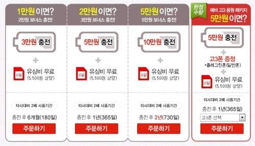 5만원충전 + 고3폰(허니버블폰,미러폰) + 유심비무료까지!!!