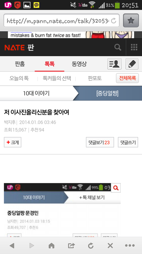 오늘 심심해서 넷판을봣는데 빠밤..추천 94 ..선플 많이잇고...진심 님들 사랑하구요 감사합니다 ㅜ 도용한분 찾앗어요ㅋㅋ 알고보니 카스 저랑 시비붙엇던분이엿네여ㅋㅋ 아무튼 선플 정말감사하구요 ㅜ 이만 퇴갤퇴갤