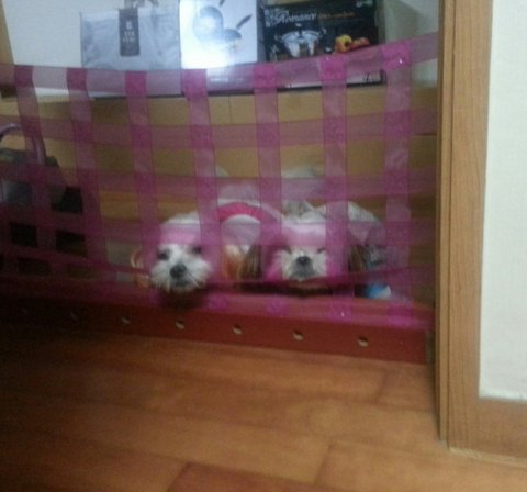 *자꾸 이불에 쉬 해서 방에 못들어오게 리본끈으로 막아놨더니...
