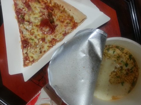 방에서 티비보면서 치즈 넣은 라면과 피자와 딸기우유를 마시고 있지. 3키로 찌워야지