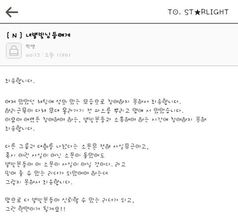 하..방금 리더 엔이 공카에 올린글을 봤습니다.