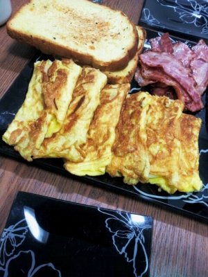 주말에동네 언니가 놀러와서 식빵굽고 베이컨굽고 계란말이 해서 먹었어용 ![]()