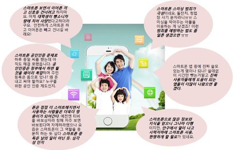 시간과 공간을 뛰어넘는 실시간 소통.최신뉴스와 정보를 실시간으로.사진, 음악, 게임 등 스마트폰 여가.손바닥 안의 금융경제 활동 등의편의를 얻고 있는 반면