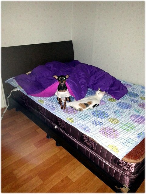 완두가 하도 이불에 쉬야를 해서 잠을 따로 자기로 결정!!!