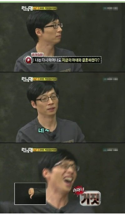 다른프로에서 다시태어나도 지금의 아내와 결혼할거냐는 질문에 난 지금 너무 행복하지만 아내에게 기회를 한번 주고싶다 라고 대답함...같은남자지만 유느님 너무 멋잇는 사람이다ㅠㅠㅠㅠ