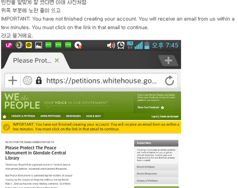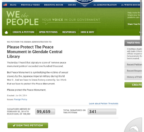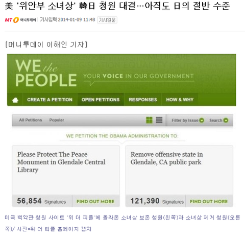 보시다시피 지금 백악관 홈페이지에서는 위안부소녀상 철거를놓고 일본측과 한국측이 서명운동을 벌이고있습니다.