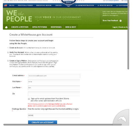하지만 사진이 보여주듯이 우리나라의 서명인원수는 일본의 절반에도 못미치고있고 심지어 백악관의 공식적인 답변이 있기위해서는 30일 이내에 10만명을 채워야하는데 그마저도 못미치는 숫자입니다.