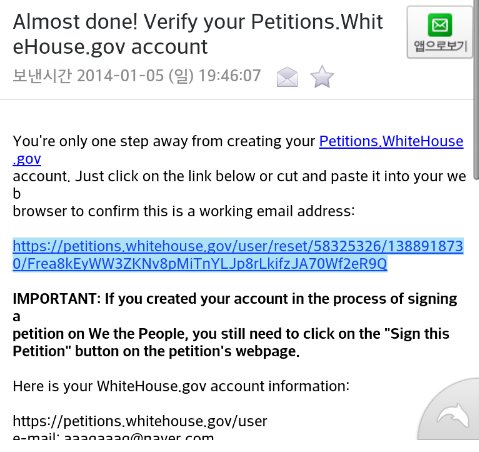 그럼 좀있다가 자신의 이메일로 백악관발 이메일하나 와있을겁니다