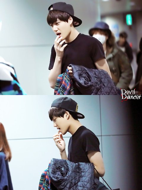 입술에 손가락 대는 버릇하는건 아닌 것 같고 입술이 아픈 것 같지?