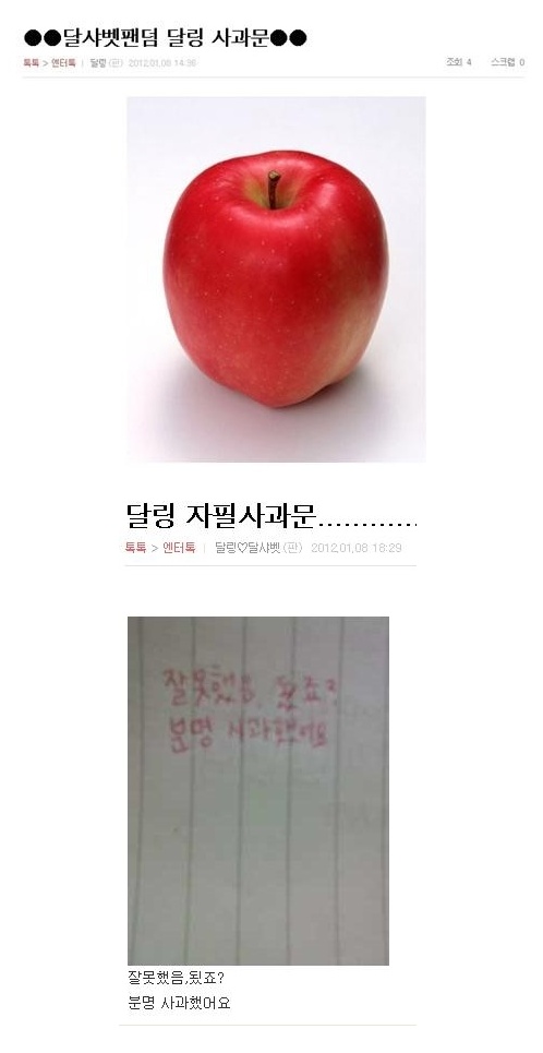 실제로 진짜 달링 분들은 정중하게 사과문을 올렸죠.