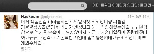 게다가 비키가 자신의 SNS로 민에게 충분한 사과를 했다고 말했고 해금 역시 자신의 SNS로 해명을 했어요.