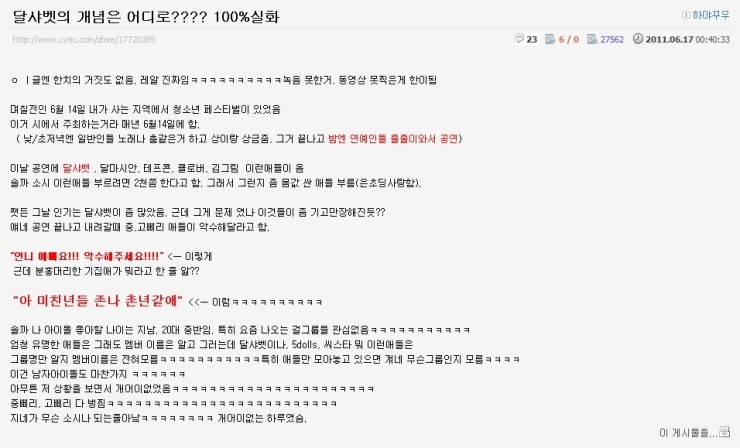 분명 저 글을 쓴 사람은 달샤벳 얼굴은 물론이거니와 이름도 몰랐는데 말이죠.