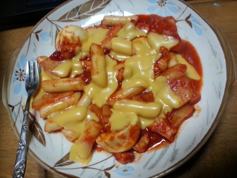 간단한 치즈떡볶이랍니다! 다음에는 국물 좀 있게 해야겠어요~