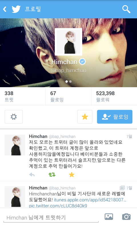 힘찬이 트위터계정@ bap_himchan으로바꿈