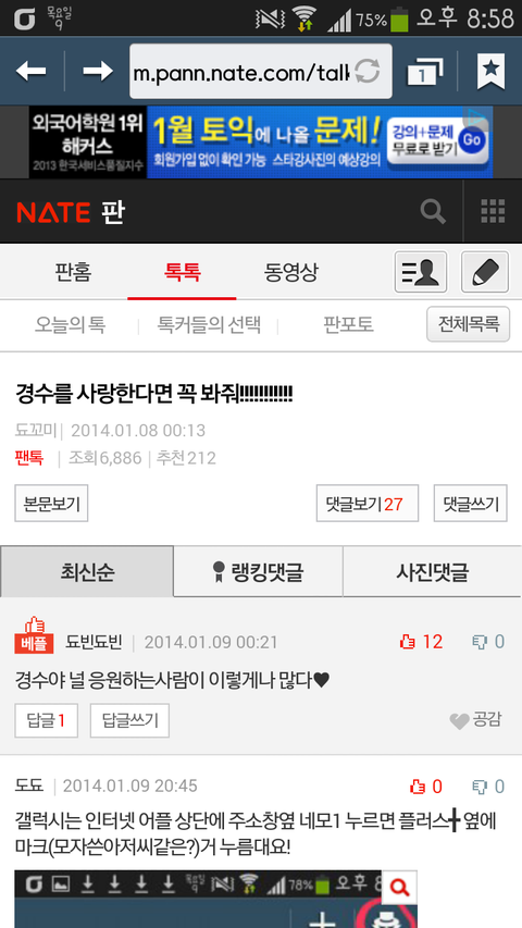 내가 집에 일이있어서 일주일만엔가 판에 들어온동안