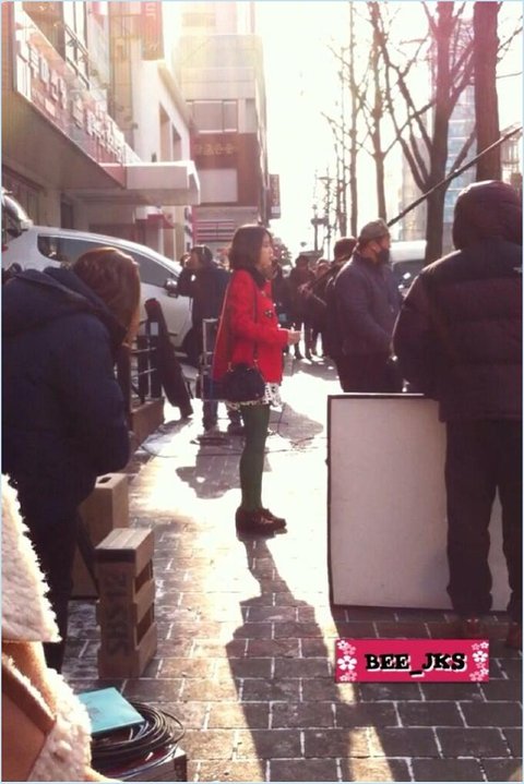 빨간 망또같은 코트에 초록 스타킹을 신고!!