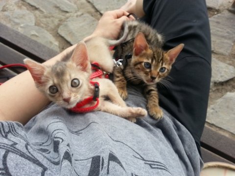 작년 가을쯤이였나.. 둘다 바깥환경에 적응시켜서 산책냥이로 만들고 싶어했다는..