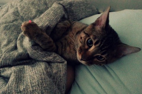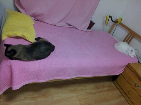 따라하는건지 베개를 배고 이불까지 덮고 인간 흉내내는 중입니다 ㅋㅋ