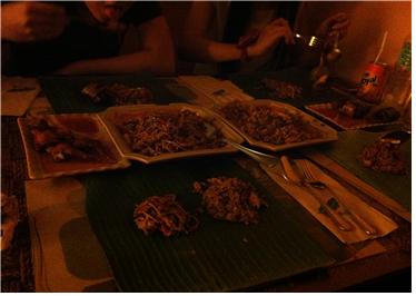 레스토랑 이름이 말하듯이 여기에는 개인 접시가 큰 바나나 잎으로 나온답니다.