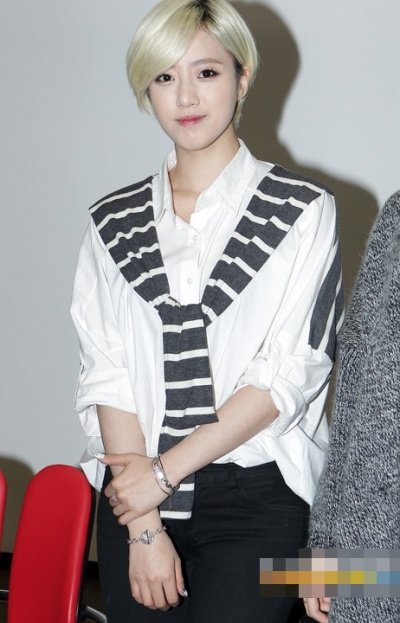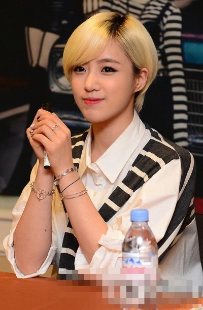 머리가 빨리 자라는 타입인지 벌써 까만 뿌리가 비치기 시작한 티아라 은정