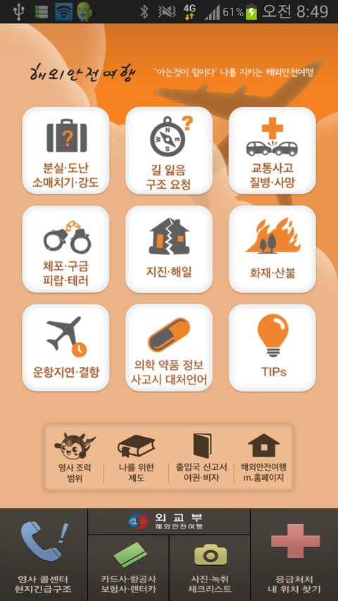 우선 외교부에서 만든 어플이다보니, 믿음직스럽고요.