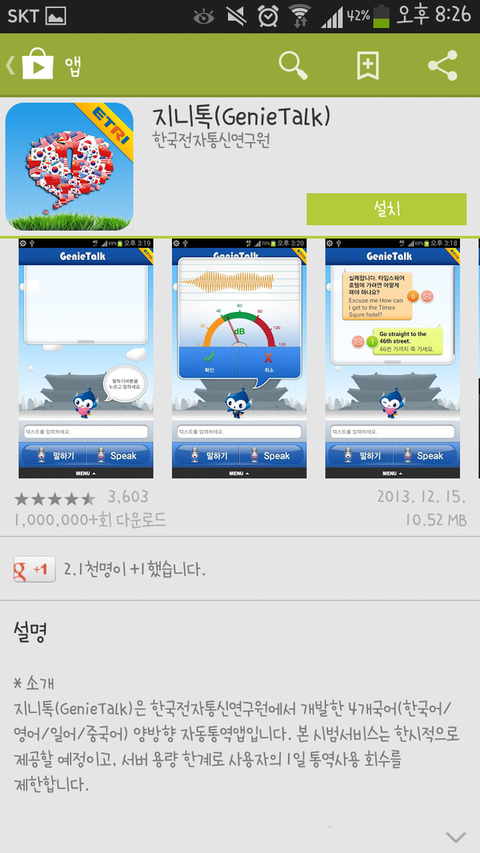다음으로 소개해드릴 어플은 영어통역 어플, 지니톡입니다!