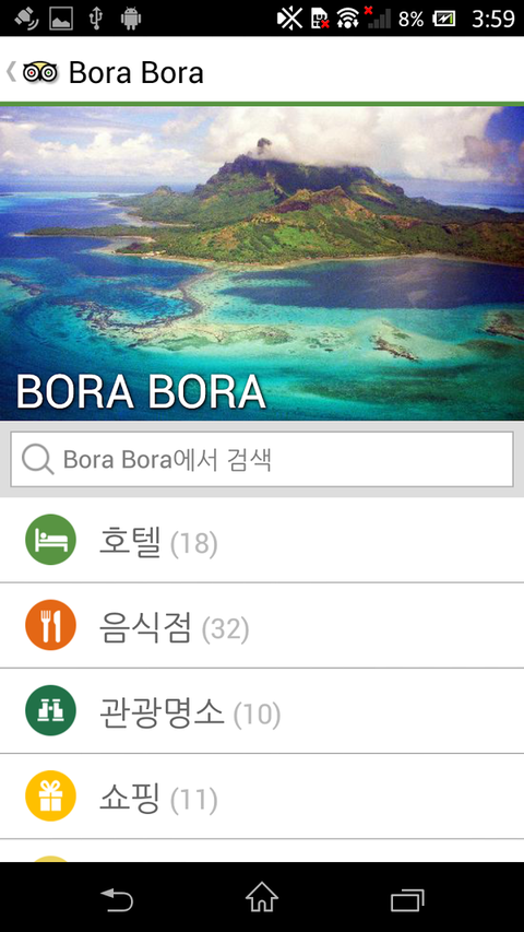 그 지역의 호텔, 음식점, 관광명소 등을 카테고리 별로 검색할 수도 있어요!