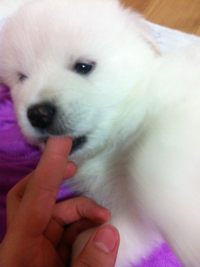 풍산개 새끼라서 그런지 무는힘이 남달라요~ㅎ