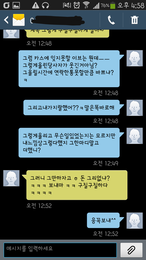 다음날 미안함에 먼저 톡해줄줄알았는데 연락도없더군요