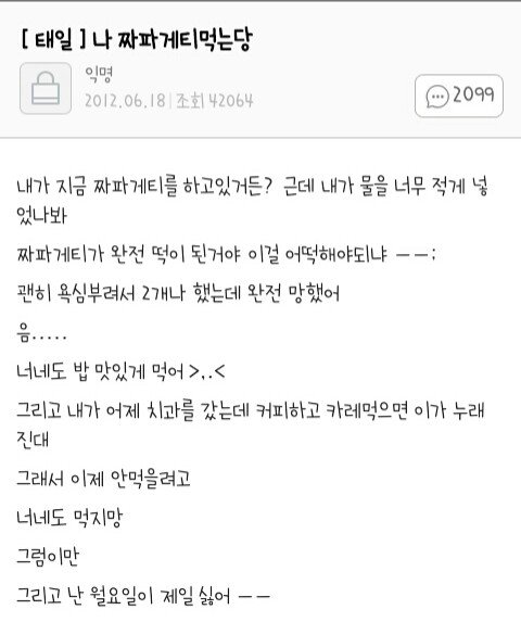 근데 태일아 나 오늘 저녁에 카레먹고 후식으로 커피마신건 안비밀..