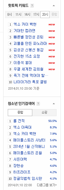 종인이 초록창 청소년 싱글녀 인기검색어에 떴다
