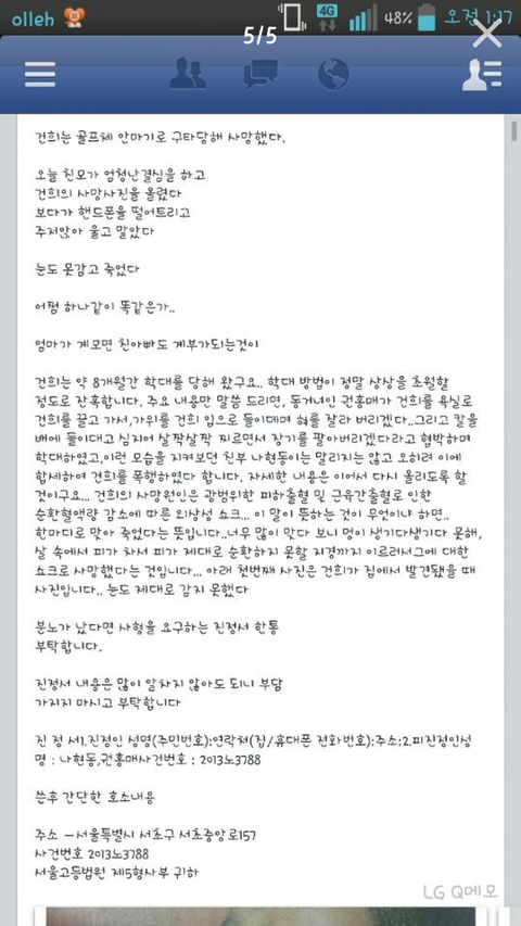 건희는 너무나 밝고 건강한 아이였고 발표도 잘하는 아이였다고 합니다.