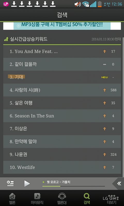 멜론 실시간급상승 키워드