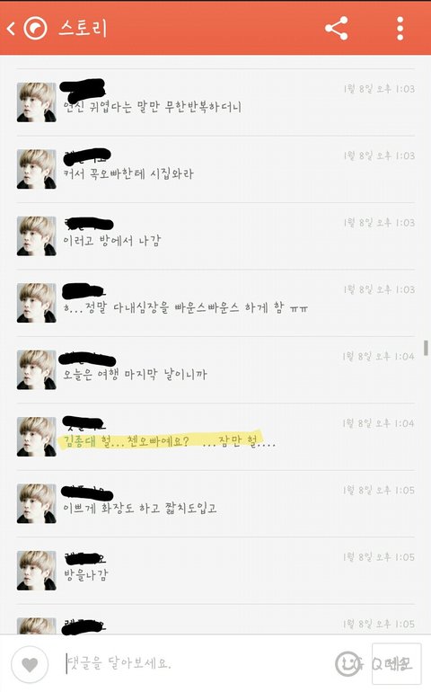 이거910이지? 카스에 막 망상글같은거 공유하는거 보다가 종대가댓글에...나도처음엔 무슨종댘ㅋㅋㅋ이러고 비웃었는데 사람들반응보니까좀..흔들린다☆종대누르니까 탈퇴한회원으로뜨던데