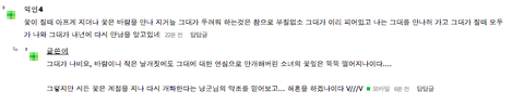 그대는 마치 내곁을 맴도는 수줍은 나비와 같소 내가 꽃이 될테어니 나에게 머물러주겠소??이거 조카 설레는데 종인이가하면 내심장터질듯
