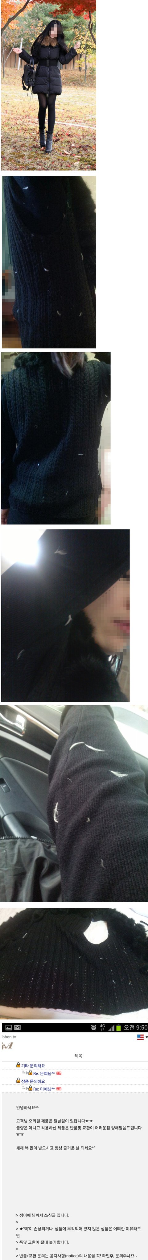 12월 18일 앨리스XX에서 오리털 패딩 구입했는데 출퇴근용으로만 입어 잠깐 10분씩만 입었는데 벗을 때마다 많이 달라붙어있길래 첫착용이라 그런갑따했는데 놀러갔다가 벗었는데 오리털 30개 넘게 뽑히고 오리깃털이 니트에 꽂혀서 살을 찌르고 테이프로는 떼지지도 않음 ㅡㅡ