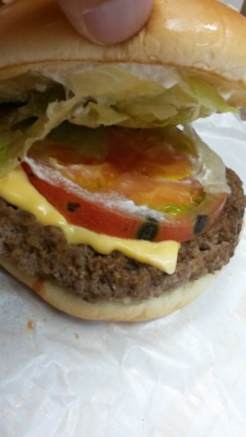 포장해와서 집에서 하나 먹고 두번째 버거를 먹으려고 포장을 벗기니 버거 안의 토마토에 뭔가 시커먼게 보이더군요